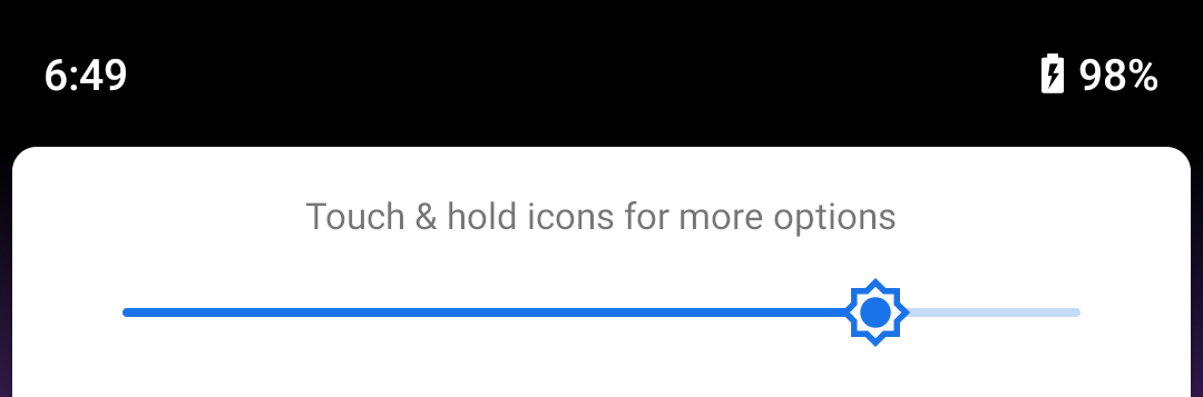 Humans perceive brightness on a logarithmic rather than linear scale1. That means changes in screen brightness are much more noticeable when the screen is dark versus bright. To match this difference in perception, we updated the brightness slider UI in the notification shade and System Settings app to work on a more human-like scale. This means you may need to move the slider farther to the right than you did on previous versions of Android for the same absolute screen brightness, and that when setting a dark screen brightness you have more precise control over exactly which brightness to set.