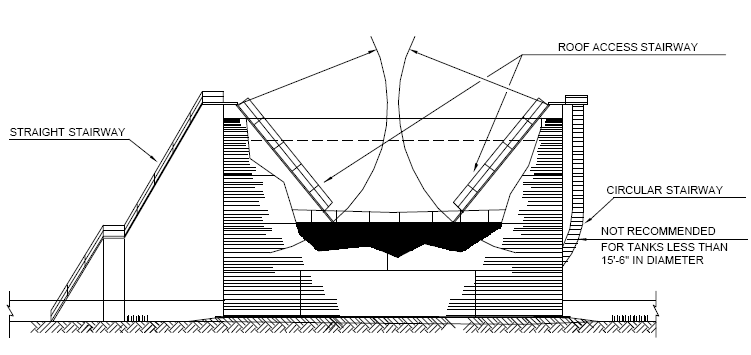 - Valve access platform / ladders at the piping outlet nozzles of tank.